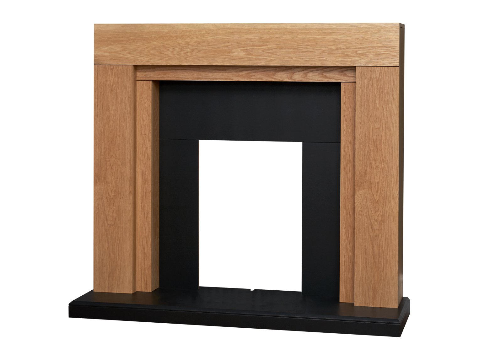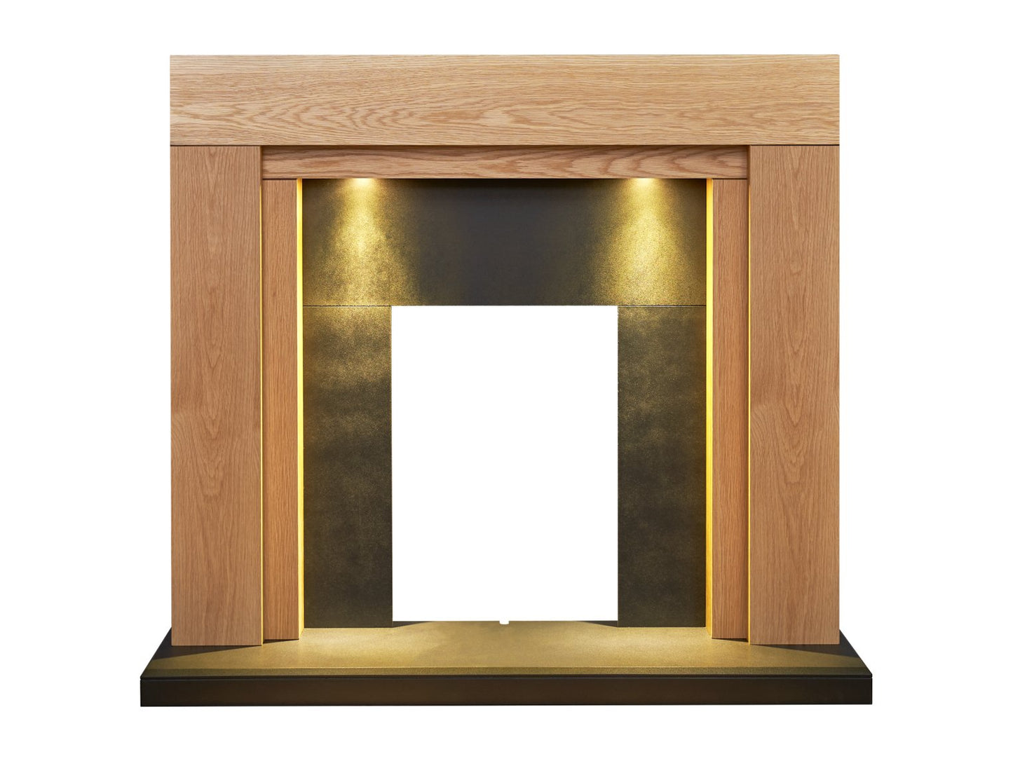 - Independent LED downlights included.- Oak surround with black back panel & hearth.