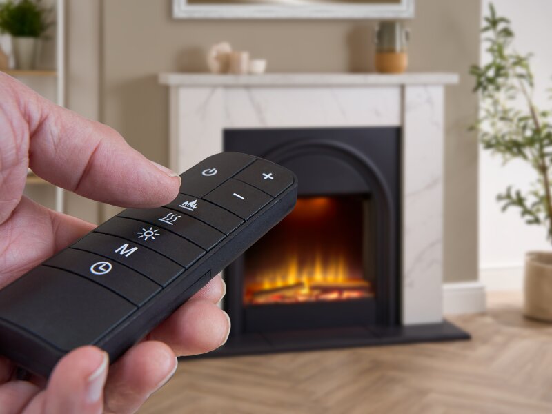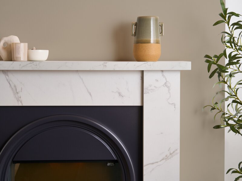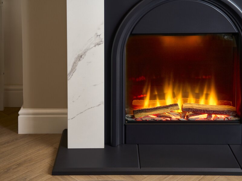 Simple and modern, the Burlington fireplace is a no nonsense surround that is perfect for a modern interior with its white marble effect finish. Supplied with an electric fire which will set your imagination alight with the atmospheric log fuel bed, 3D LED flame effect technology and seven colour settings. The heat output of 1kW and 2kW can be operated by the supplied remote control on a 7-day programmable timer, the remote control also allows you to operate the flame effect and colour settings.