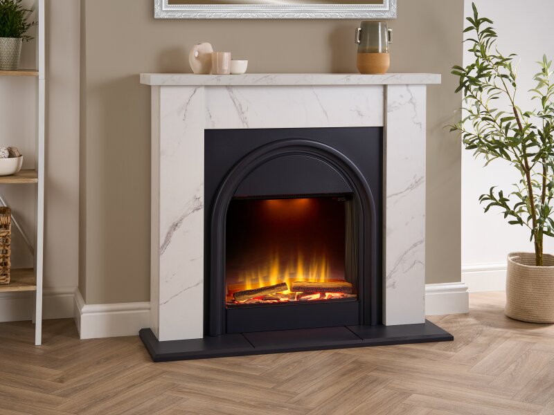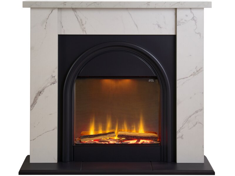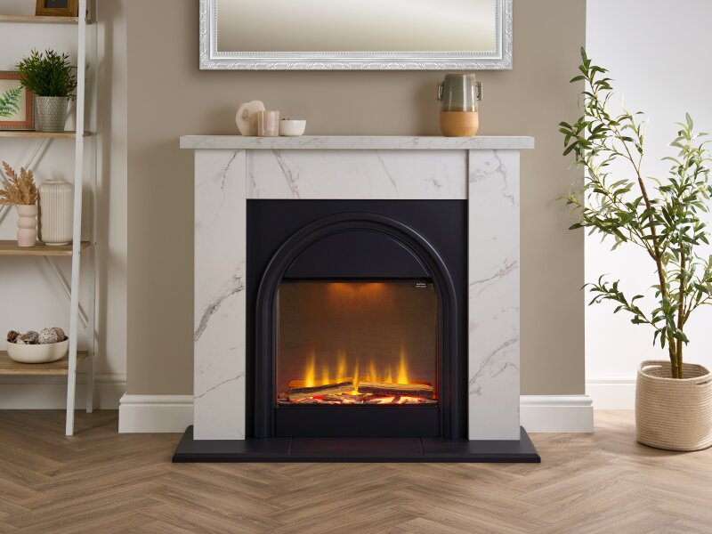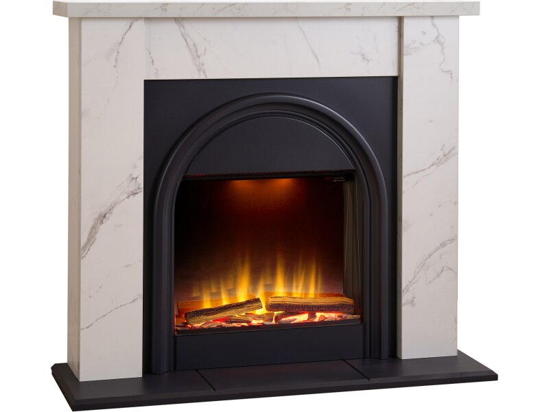 Adam Burlington Electric Fireplace Suite in White Carrara Marble Effect, 44 Inch