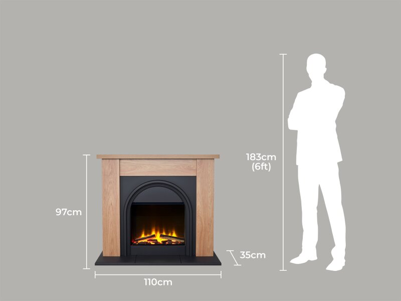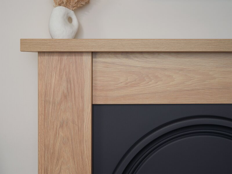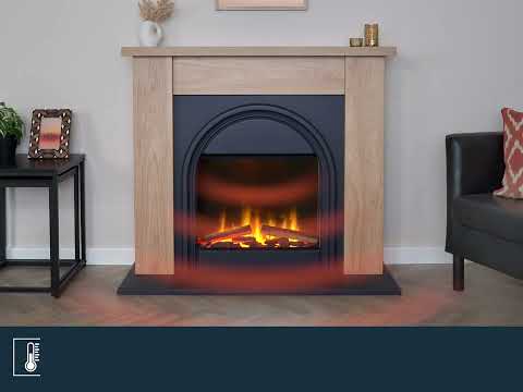 Simple and modern, the Burlington fireplace is a no nonsense surround that is perfect for a modern, minimalist interior. With a oak mdf finish. Supplied with an electric fire which will set your imagination alight with the atmospheric log fuel bed, 3D LED flame effect technology and seven colour settings. The heat output of 1kW and 2kW can be operated by the supplied remote control on a 7-day programmable timer, the remote control also allows you to operate the flame effect and colour settings.