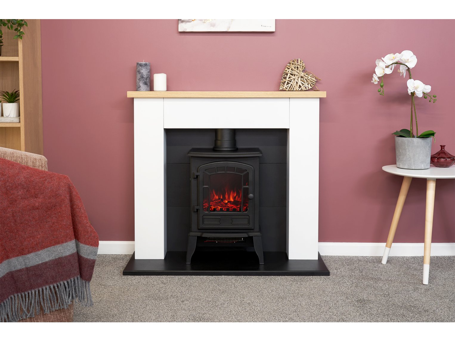 Adam Chester Fireplace Pure White + Ripon Electric Stove Black, 39"