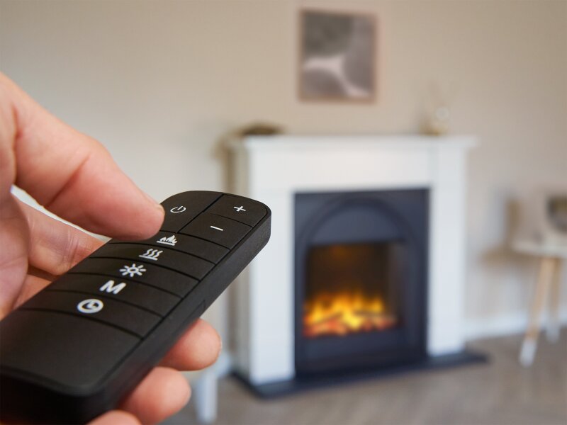 - 3D LED flame effect technology with built-in digital display.