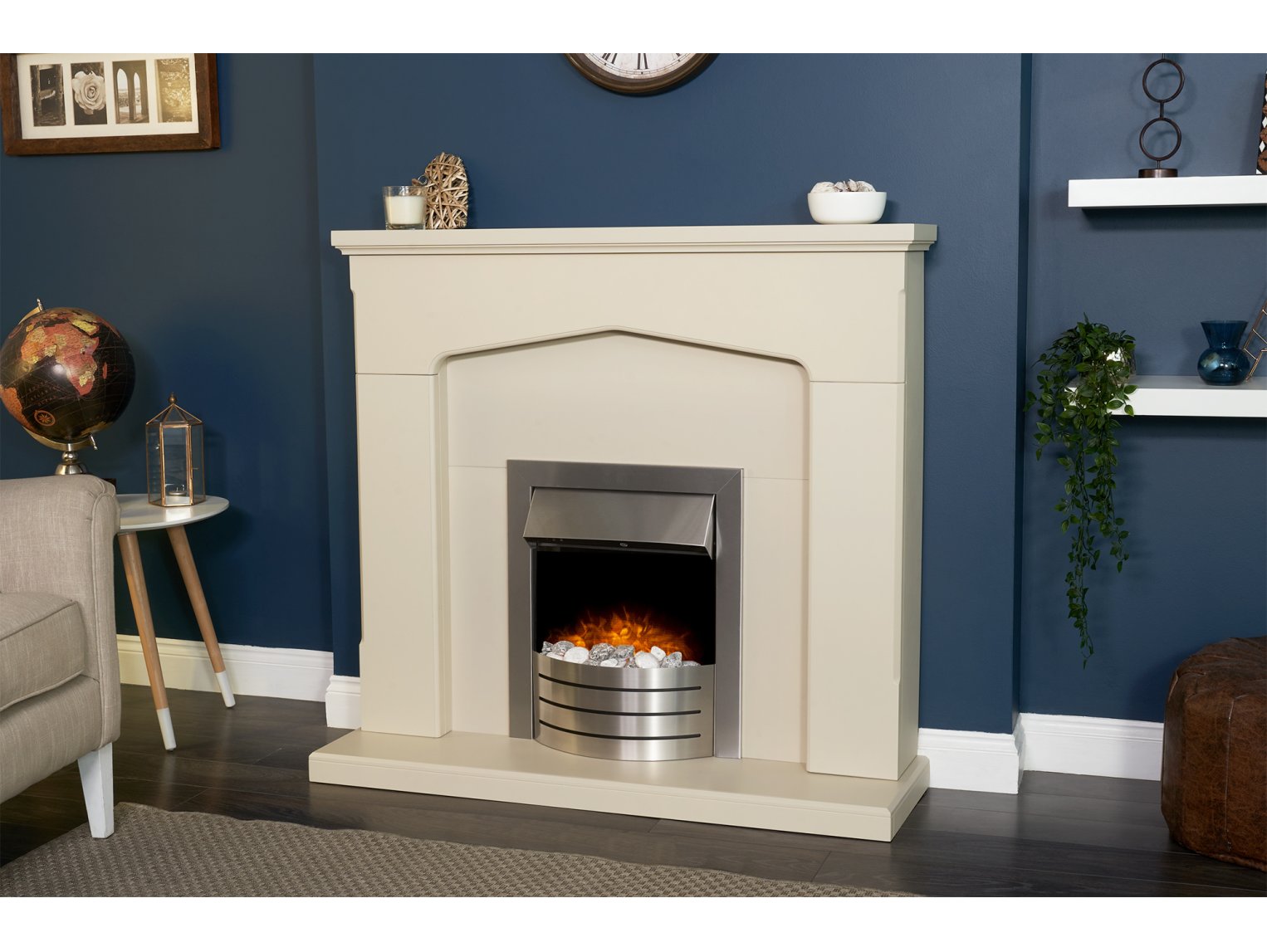 Adam Cotswold Fireplace Stone Effect + Comet Electric Fire Brushed Steel, 48"