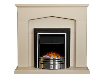 Adam Cotswold Fireplace Stone Effect + York Freestanding Electric Fire Brushed Steel, 48"