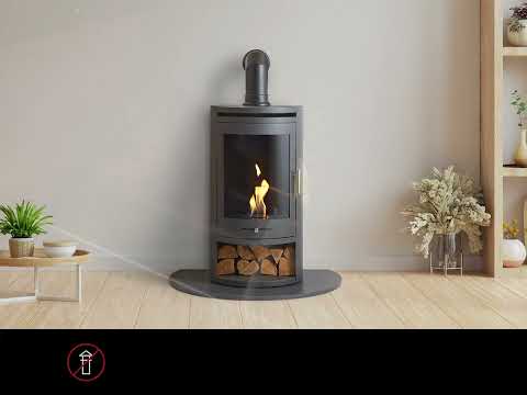The OKO S5 bio ethanol cylinder stove in charcoal grey offers the brilliance of a real, open flame and lets you benefit from the airFLO convection system for up to 8 hours thanks to the 1.5 litre stainless steel bio ethanol burner. The stove can provide a heat output of up to 3kW depending on the size of the opening which can be safely adjusted by using the supplied control tool. The modern looking S5 stove is glass fronted and you can operate the door by turning the attached handle by 90 degrees. Another added feature of this is the log storage which is also finished in charcoal grey and as the stove doesn't require a direct flue in the form of a chimney this can be placed freestanding which makes it simple and easy to install.