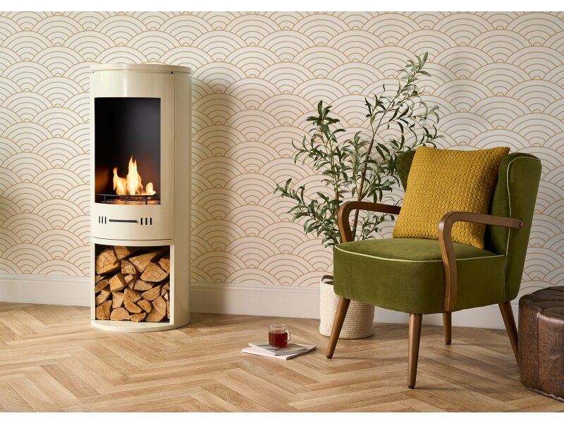 - Cream bio ethanol stove with 1.5L stainless steel bio ethanol burner.